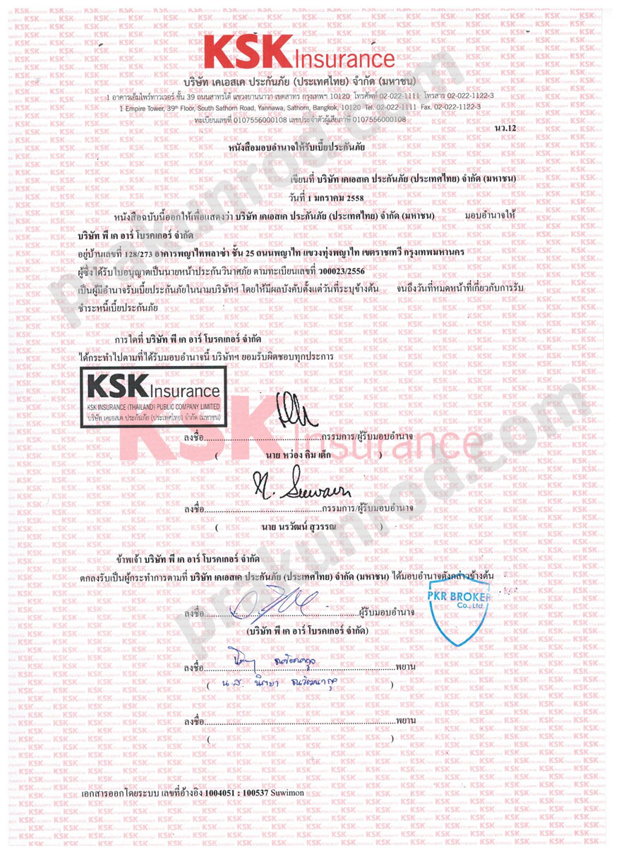 - หนังสือมอบอำนาจรับเบี้ยประกัน